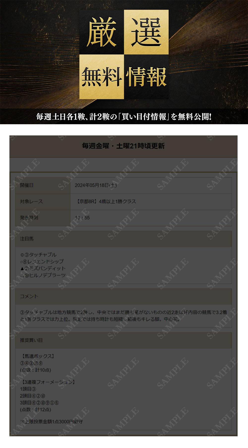 買い目付情報をはじめとした